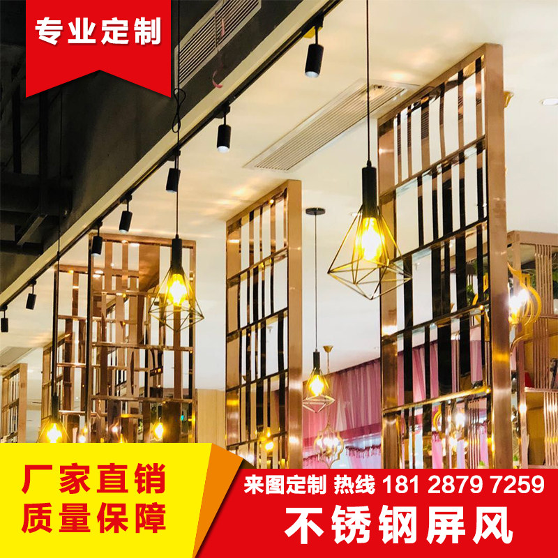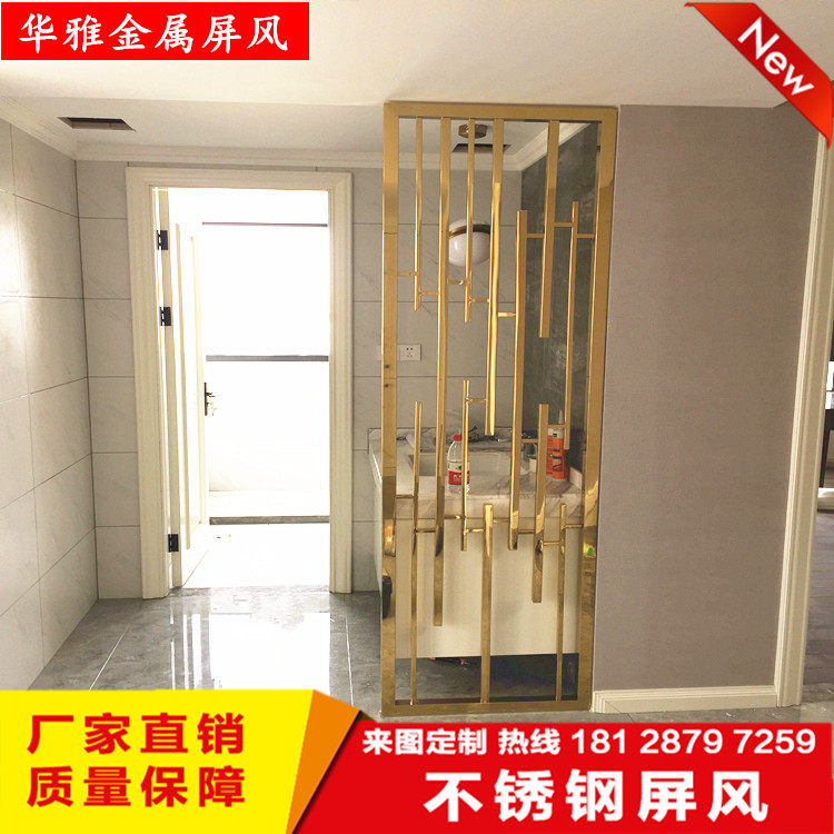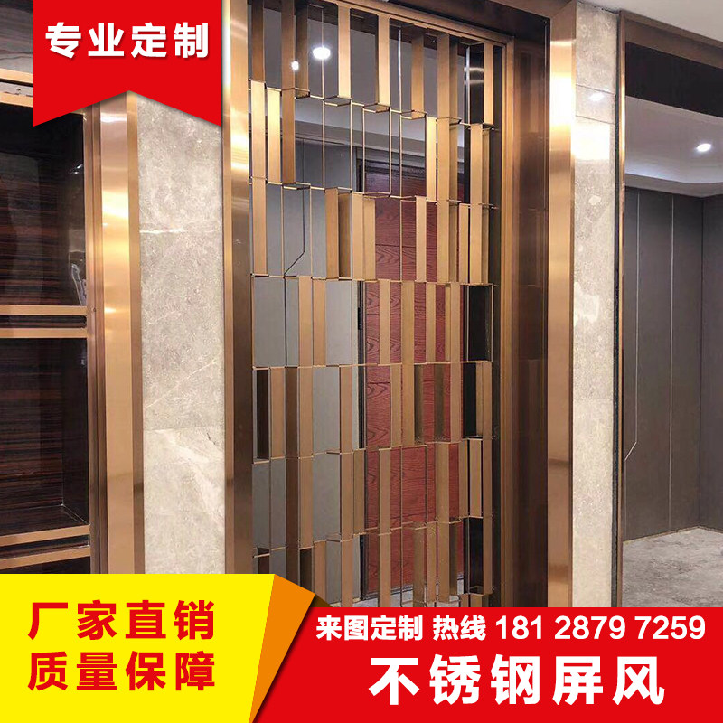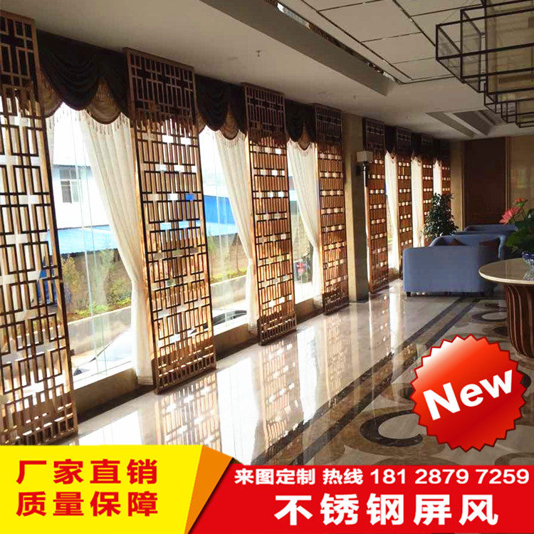 Light luxury stainless steel screen partition hotel sales department living room porch showcase titanium gold hollow carved metal lattice