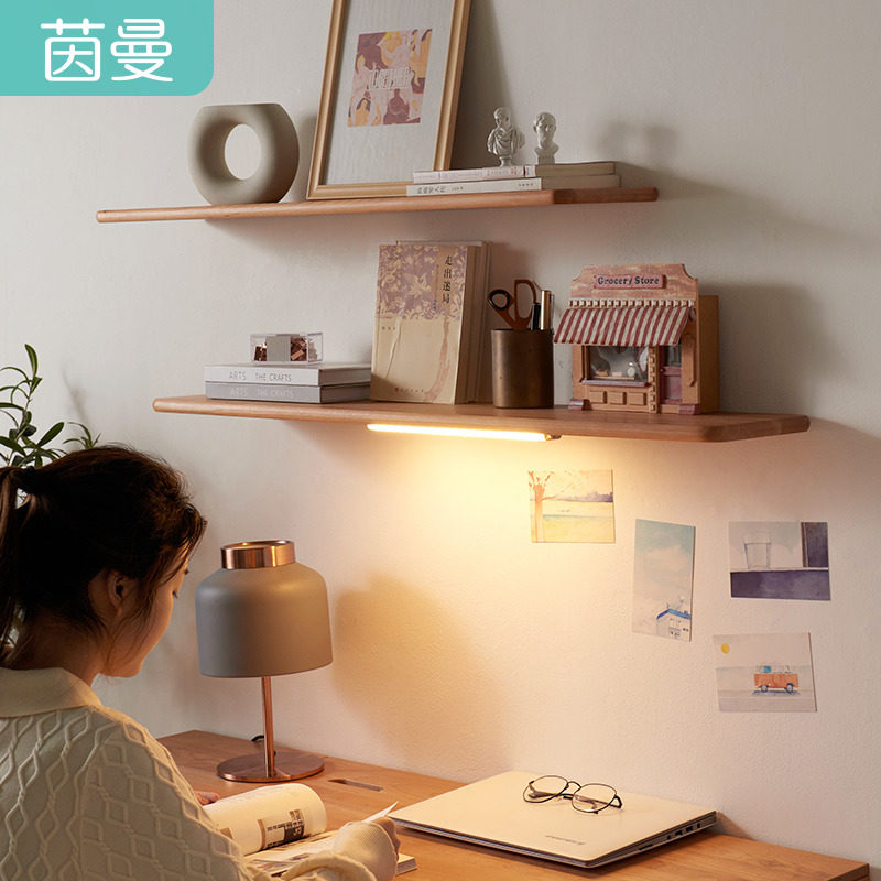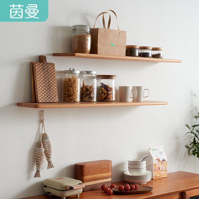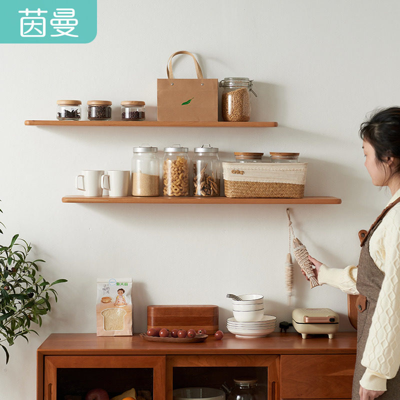Inman solid wood wall shelf fine grinding one-word partition cherry wood Japanese-style living room TV wall solid wood shelf
