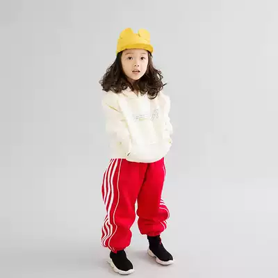 Pear small leisure Winter girl plus velvet thick school pants sports leisure cotton pants children's pants 2 color E84K1675