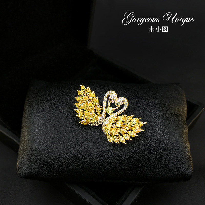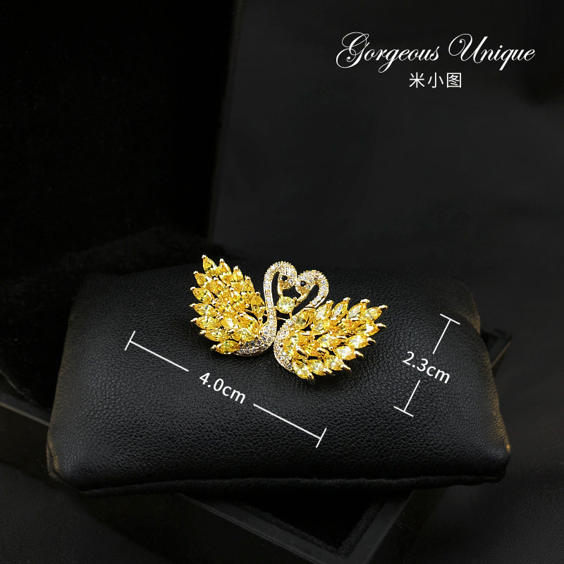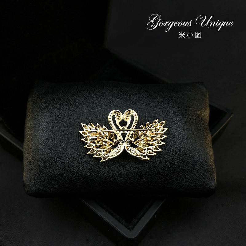 A particularly exquisite pair of little swan brooches High-grade ultra-shiny zirconium corsage brooches sweater accessories 539