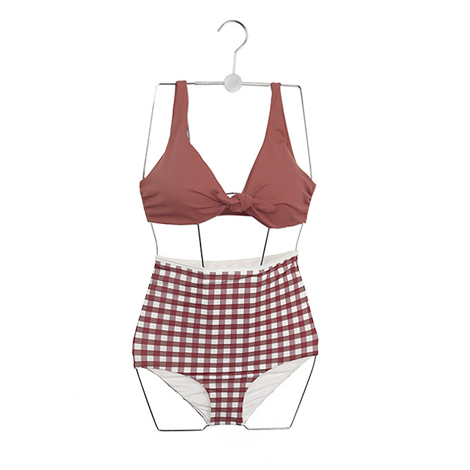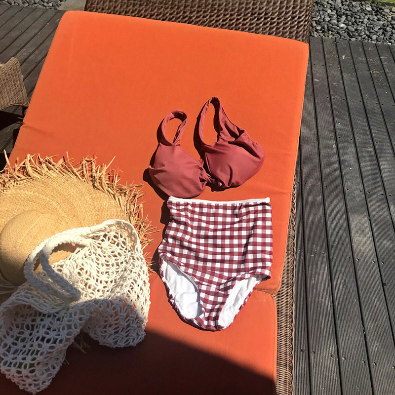 Special offer female 9912 Korean retro plaid bikini gathered two-piece swimsuit ins high waist cover belly swimsuit hot spring