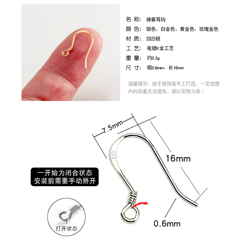 S925 Silver DIY Accessories Earrings Accessories Silver Ear Hook Pure Silver Ear Hook Earrings Ear Hook Ear Hook Ear Hook Earrings Hook