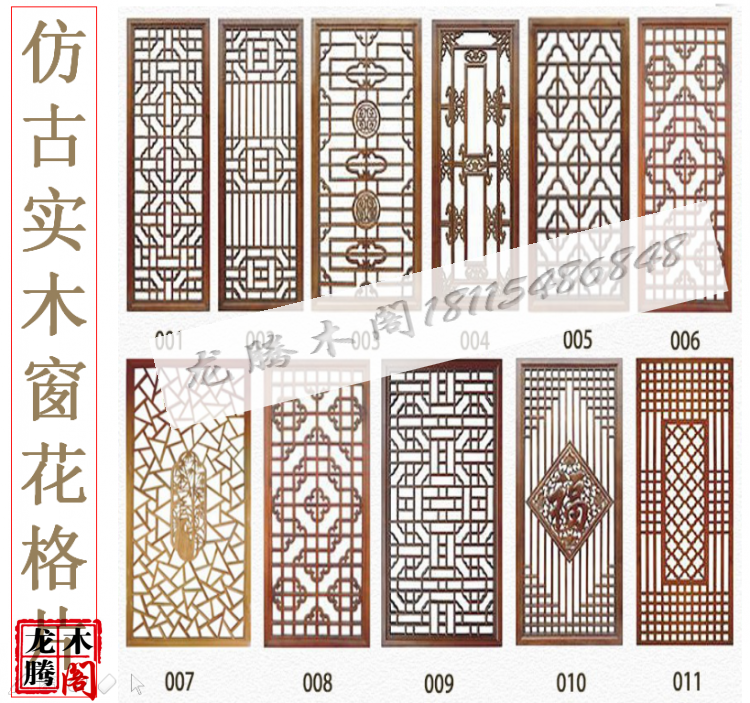 East Yangwood Carved Solid Wood Mortise and Flowers Lattice Ming and Qing antique Chinese doors and windows engraved spaces Custom Xuan Guan Partition