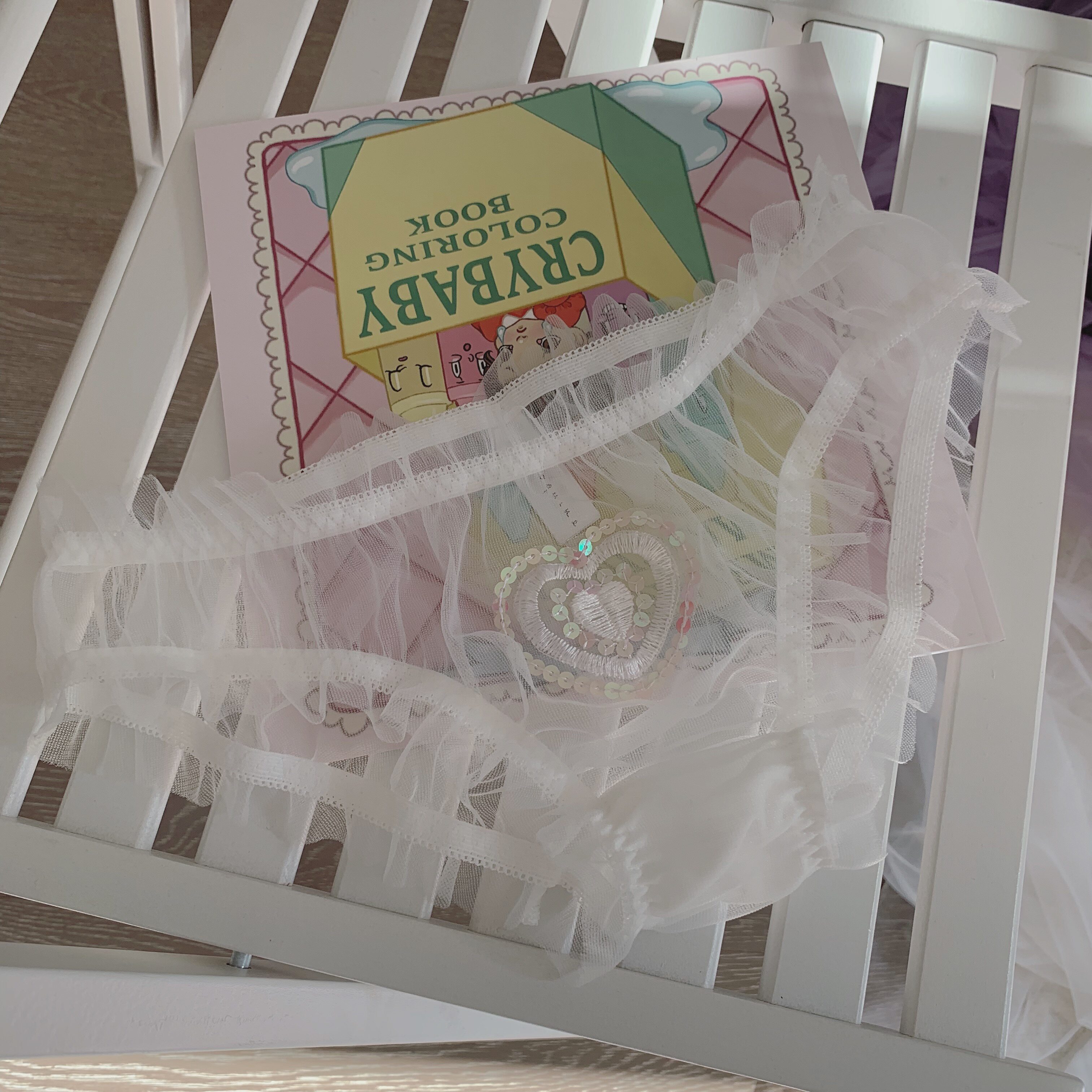 Sold out Coquine 100% handmade girly heart white mesh embroidered heart underwear set
