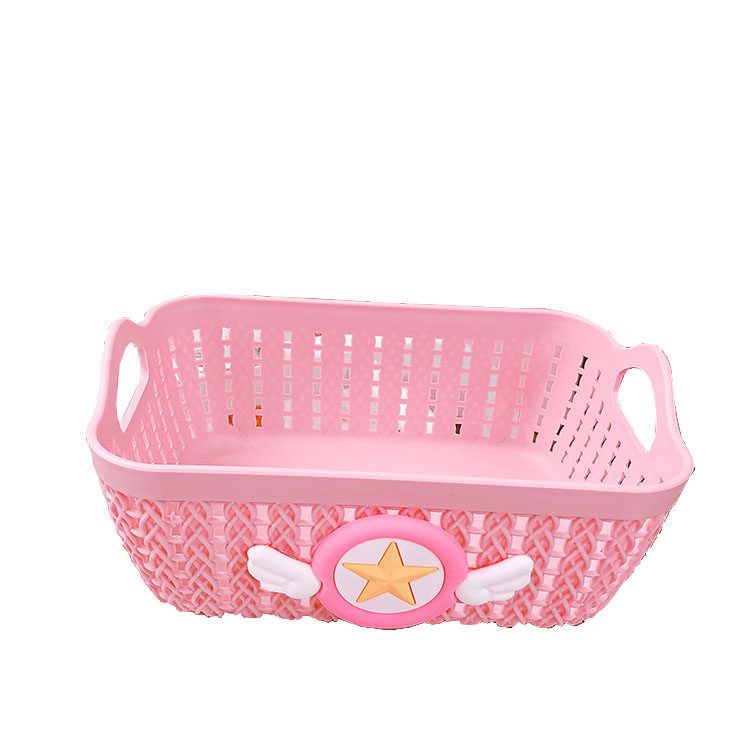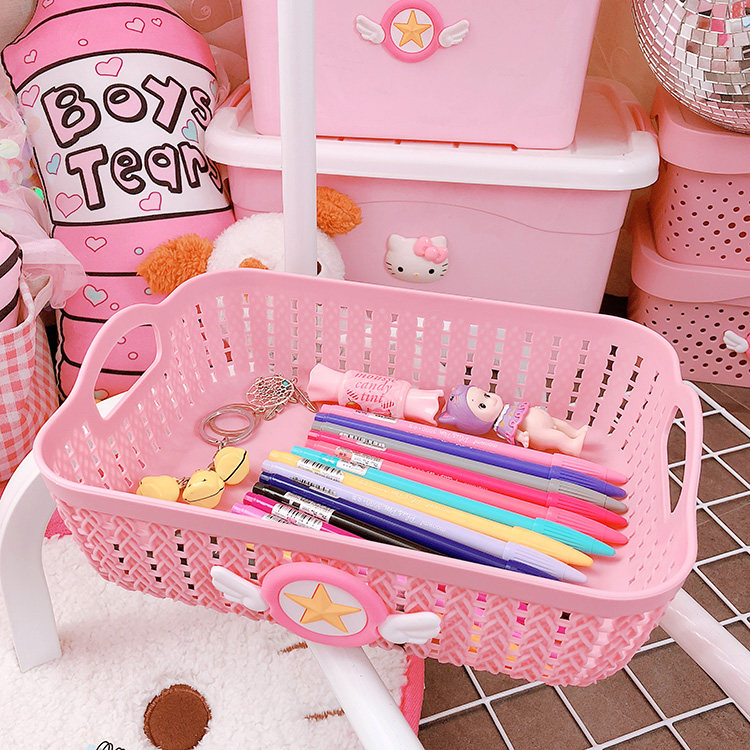Cute Girl Heart Woven Minimalist Containing basket Collation Miscellaneous Tabletop Containing basket Imitation vine-knitted plastic Cosmetics