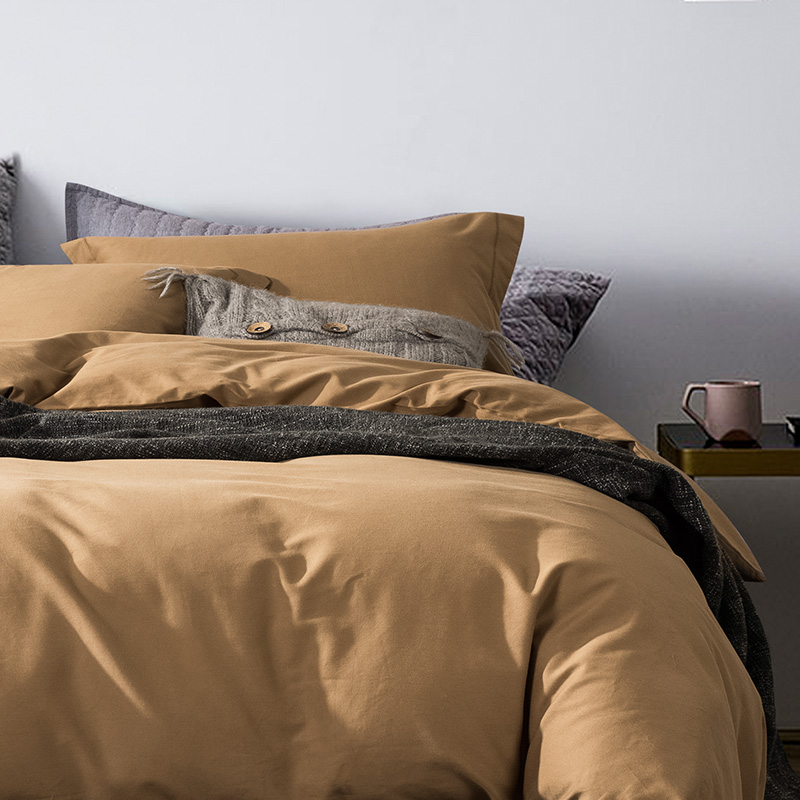 Qiju Liangpin autumn and winter Nordic simple thickening warm solid color sanded bedding four-piece bedding kit