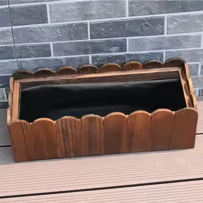 Hanging flower pot large wooden pot rectangular carbonized outdoor flower box anticorrosive wood balcony railing flower stand Outdoor