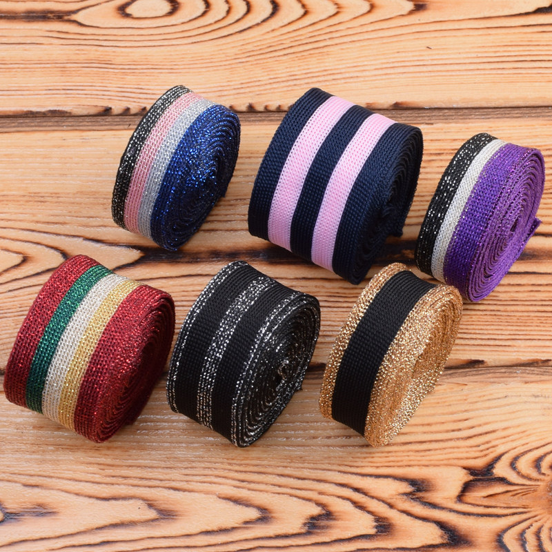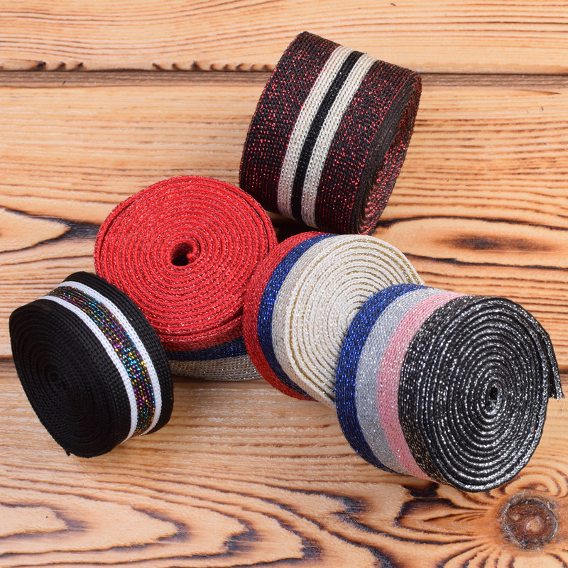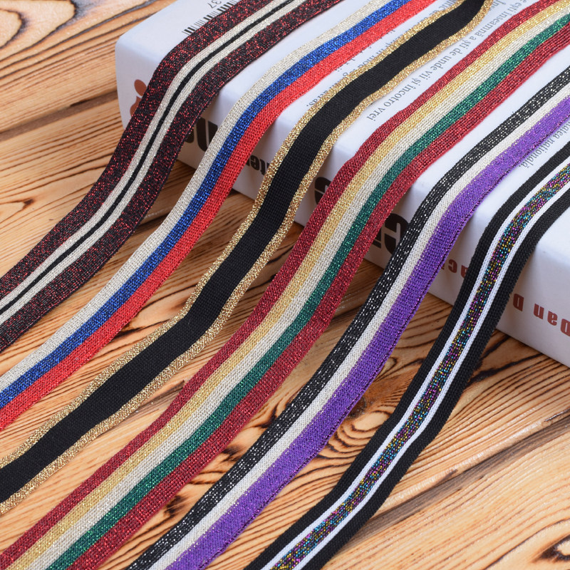 Clothing pants decorative color gold and silver silk micro elastic elastic striped webbing accessories Side strip ribbon ribbon ribbon