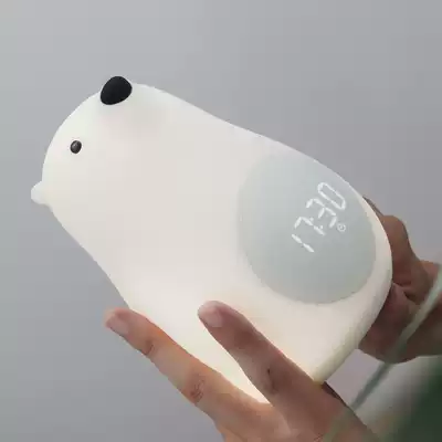 MUID big white bear alarm clock luminous children silent electronic clock cartoon smart charging student bed head sleep Light