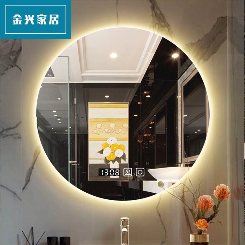 Dressing room smart round washstand bathroom with lamp led wall-mounted patch wall free of punch and fog-proof bathroom mirror