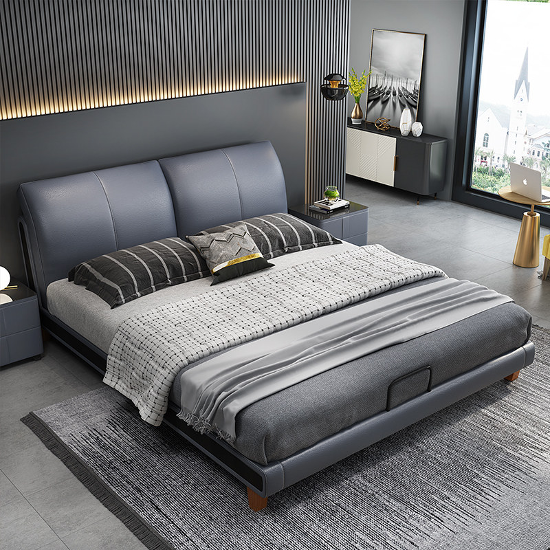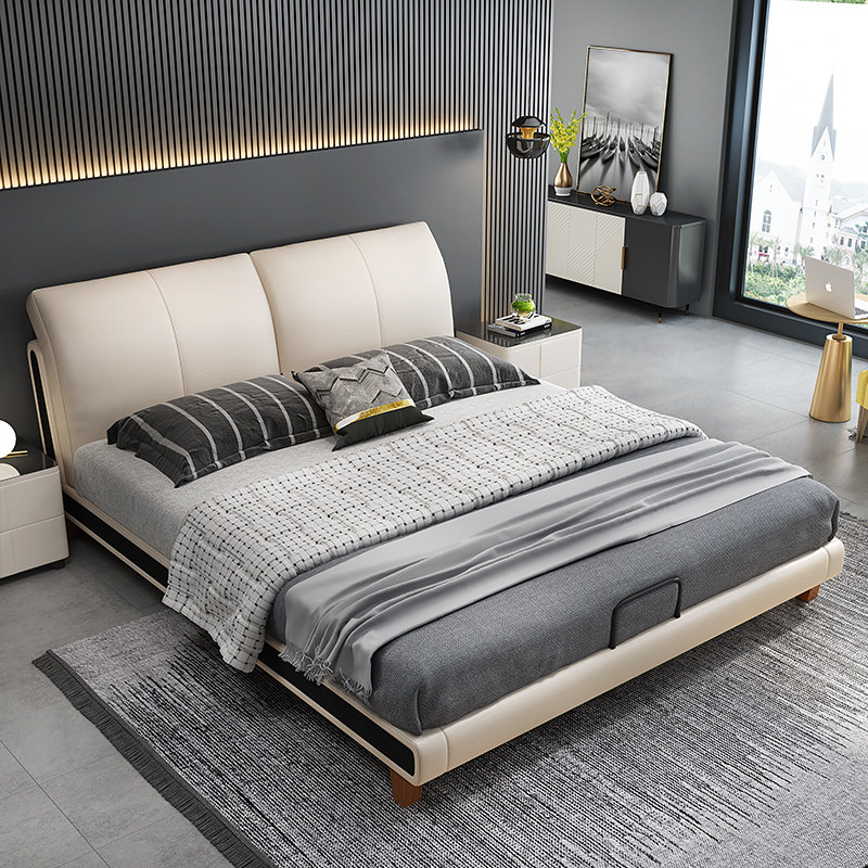Dipubed modern minimalist genuine leather bed 1 8 m double bed bedroom bed Nordic master bedroom leather art bed kit innate