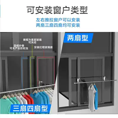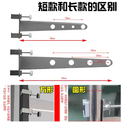 Stainless steel window drying rack window frame clothes bar guardrail household fixed single pole type anti-theft net without punching
