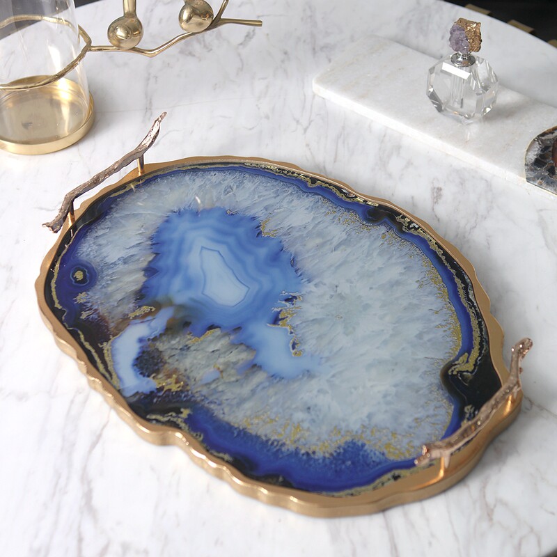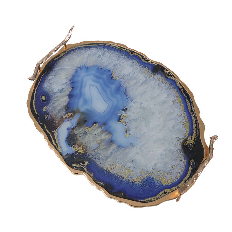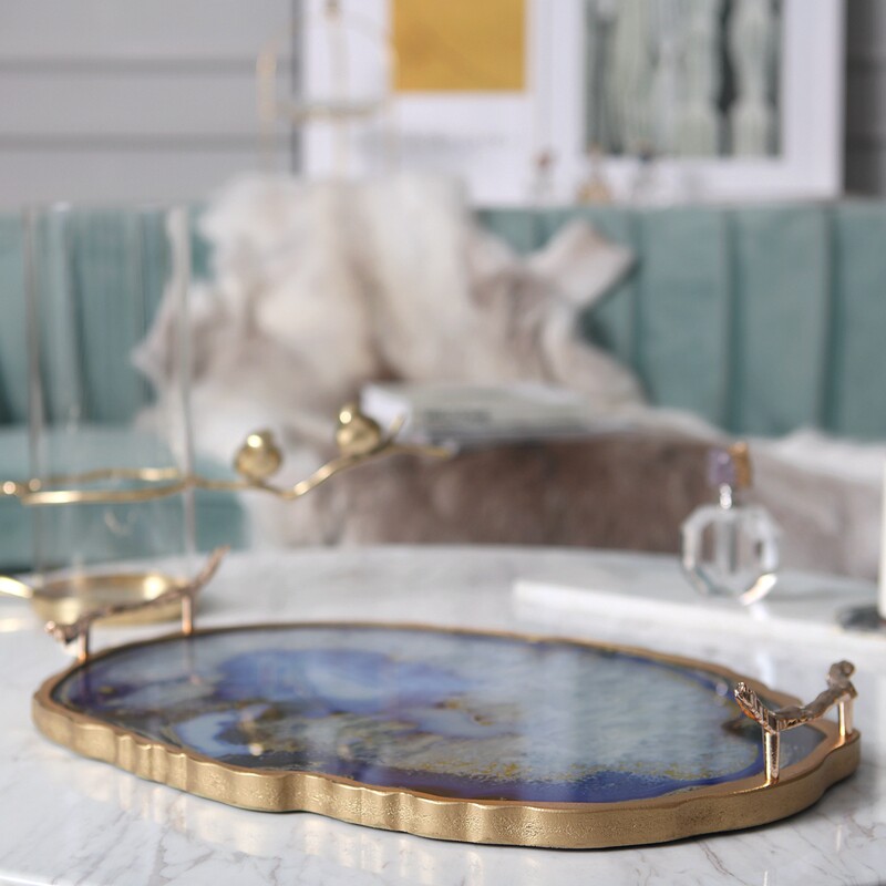 Living room household fruit plate European modern agate pattern metal tray Villa model room living room coffee table decoration