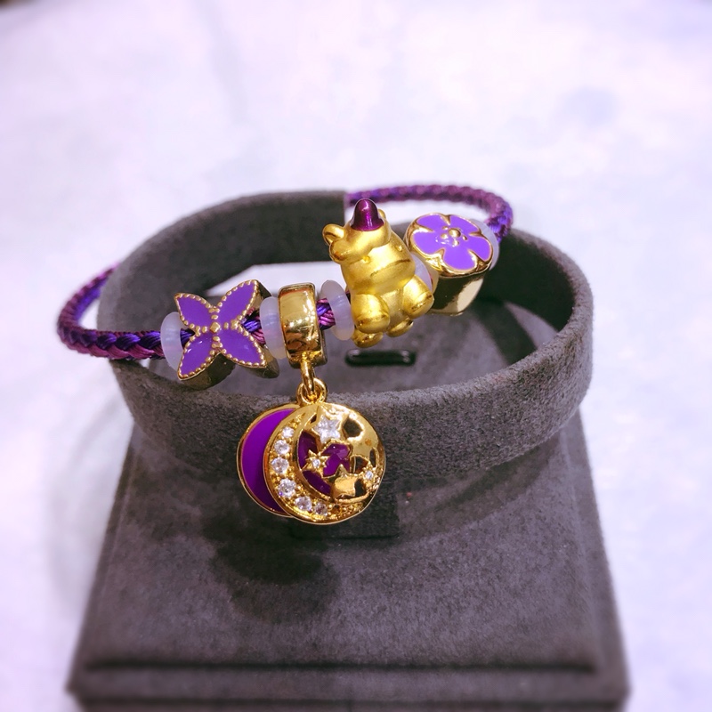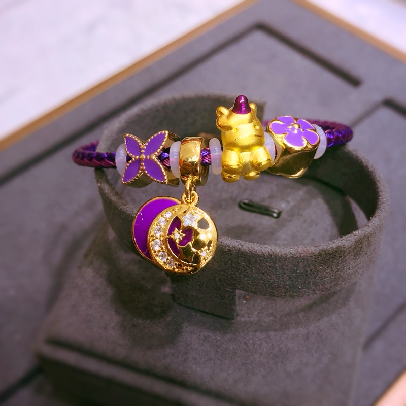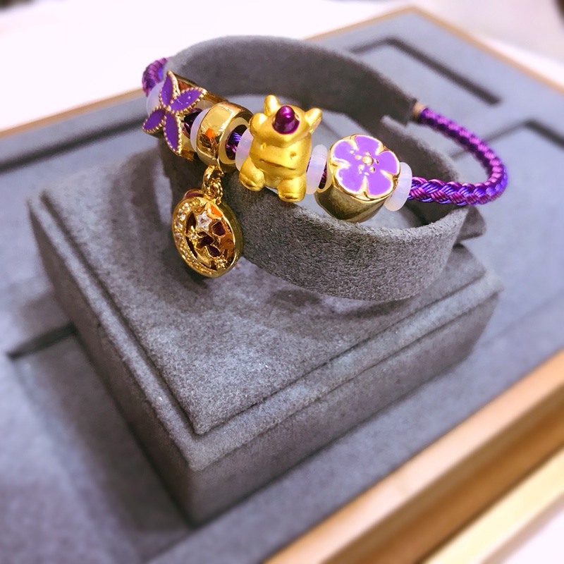 Foot Gold 999 Unicorn Bracelet Gold New Transshipment Pearl Pure Gold Handmade Woman 3d Hard gold Baking Lacquer Strings