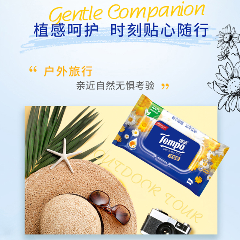 Tempo Depot wet toilet paper cleaning portable wipes family pack 40 pieces 9 packs of chamomile aloe optional