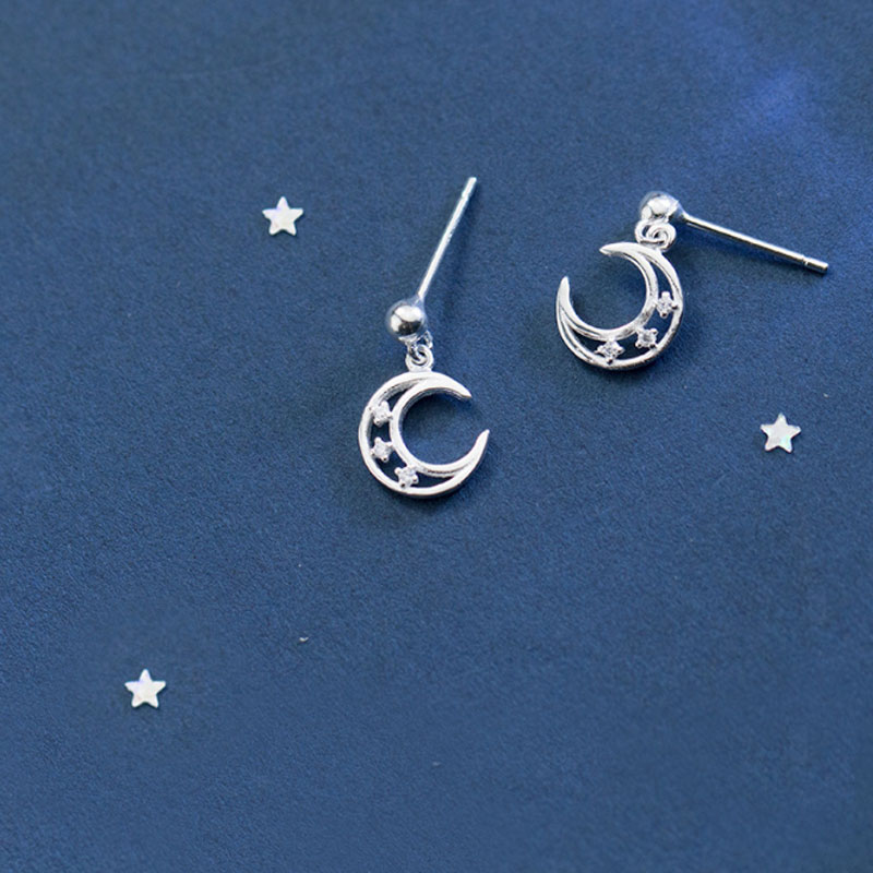 Cat Jellyfish Classic Crescent Moon Tooth Inlaid Zircon with small frescoed earrings, Japan-ROK Temperament Women's Girlfriends Wear and Gift Gifts