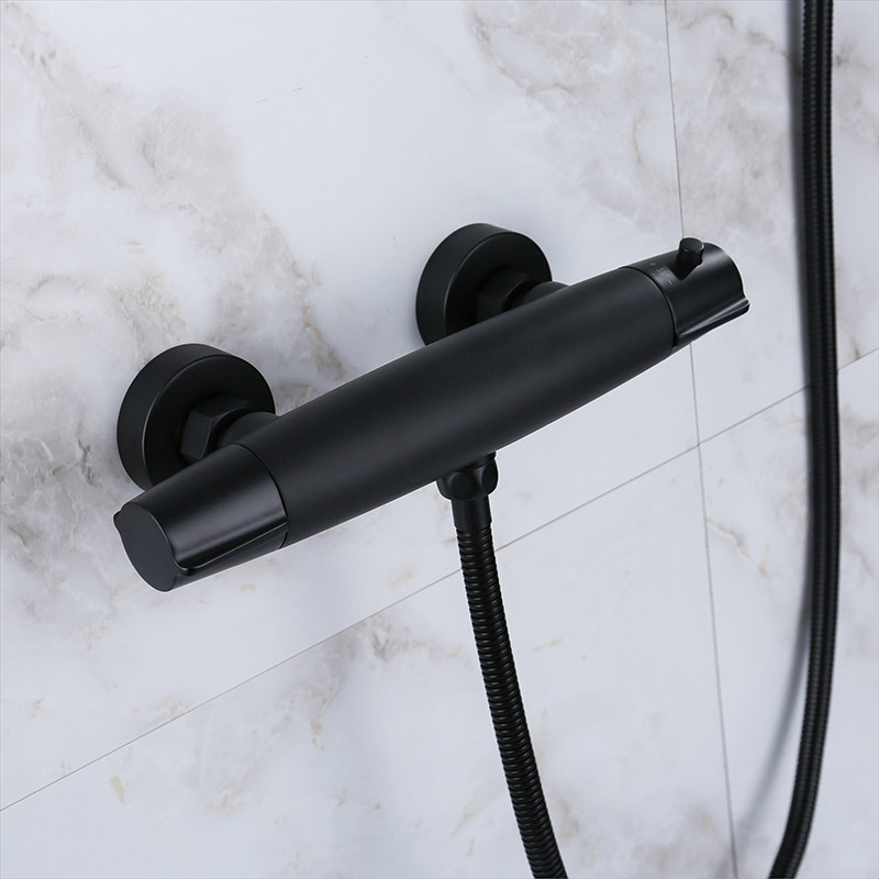 Black constant temperature shower Hot and cold household powder room simple bath room lifting rod bracket nozzle booster set