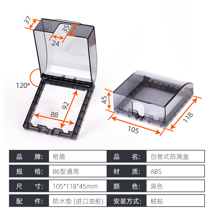 Self-adhesive waterproof box type 86 black splash box Socket cover Powder room switch cover Bathroom power protection box