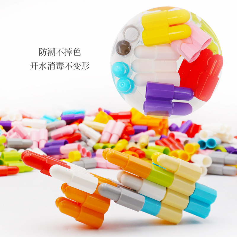 Children's plastic bullet block rocket toy kindergarten in class spelling and jigsaw rocket head stitching