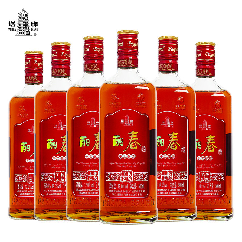 Tower brand Shaoxing specialty rice wine Lichun wine 500ml*6 bottles of whole box handmade winter brewed semi-sweet good old wine