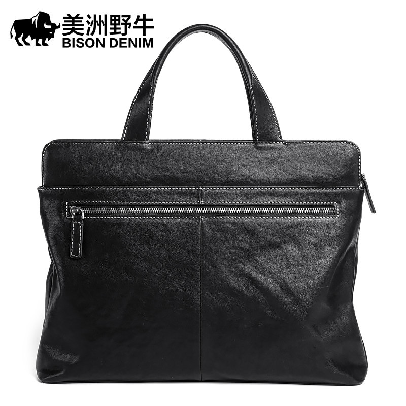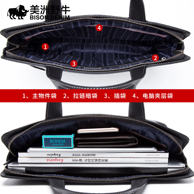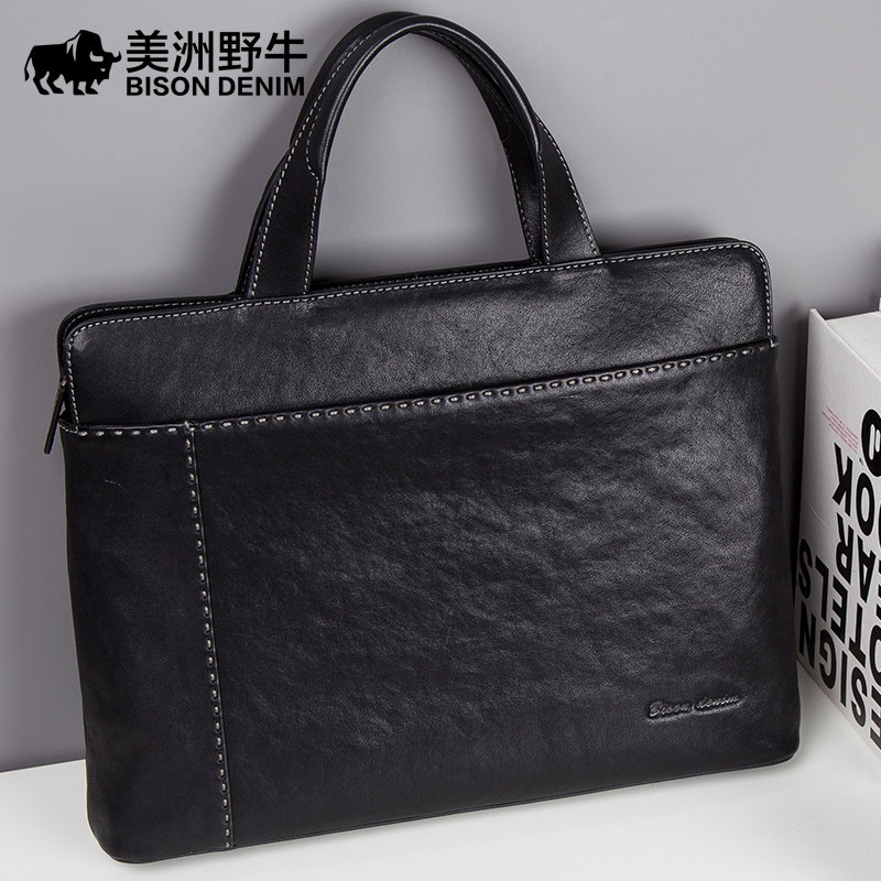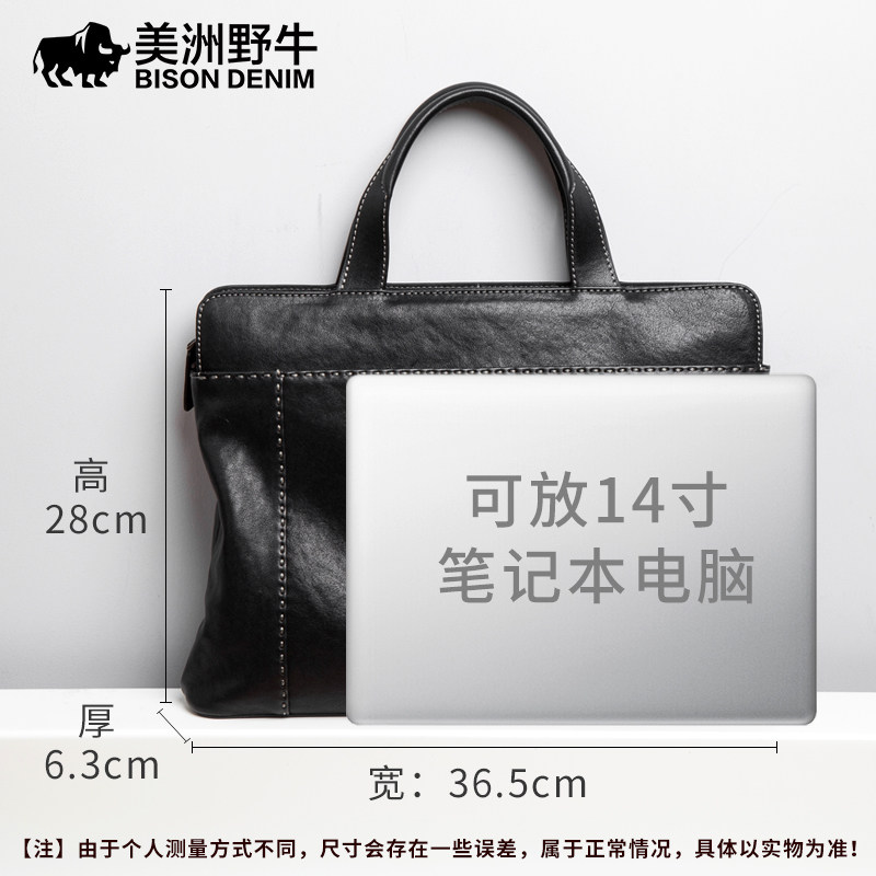 American bison leather men's bag business men's handbag cowhide Korean version horizontal briefcase casual men's bag