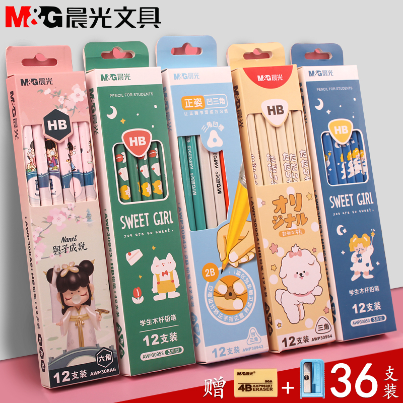Morning light and son said HB pencil (12 support) morning light full sugar triangular wooden pole HB pencil (12 support) Morning light I came to HB pencil (12 branches) morning light positive posture triangular groove 2B pencil (1)