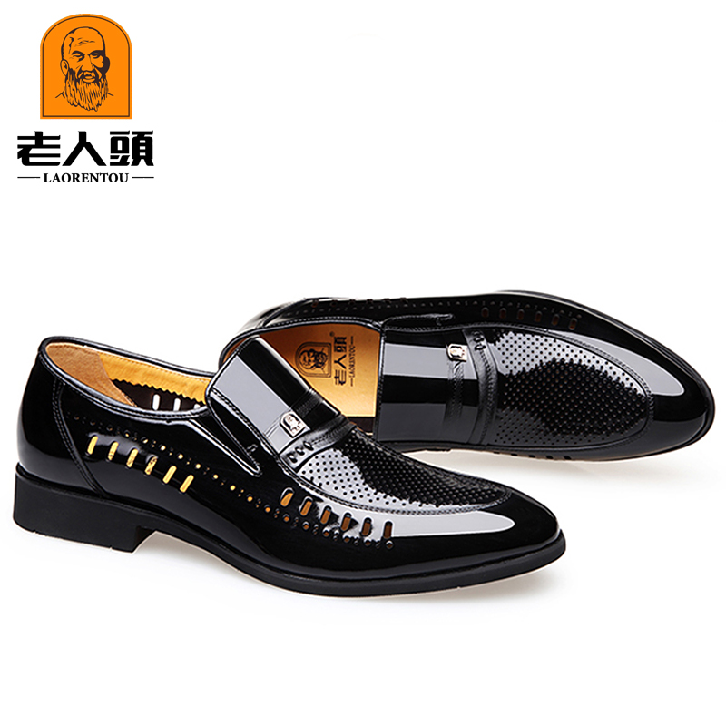 Old man's head men's shoes leather British business formal leather shoes men's pointed toe hollow breathable Korean version casual hole shoes