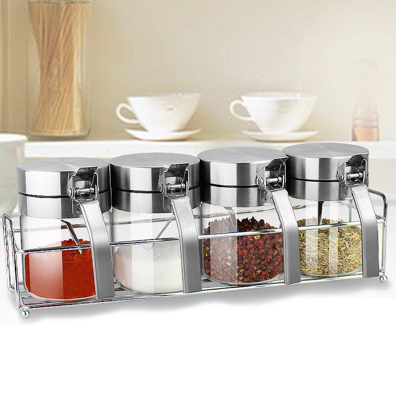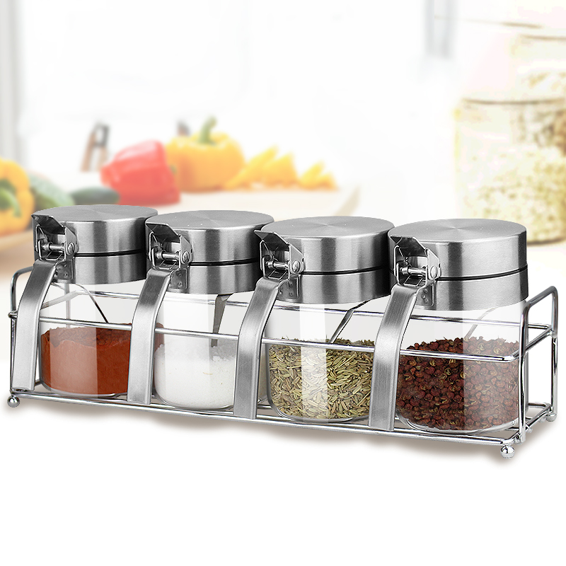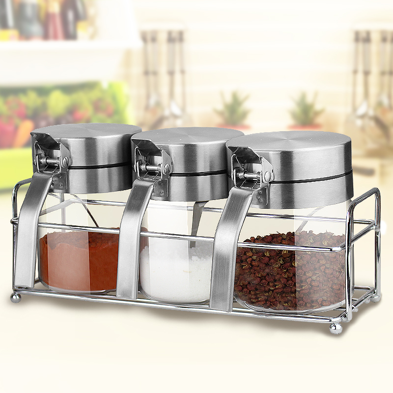 Fengshou 304 stainless steel cover glass seasoning bottle Seasoning jar Chicken essence salt pepper pepper noodle jar Seasoning box