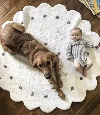 INS children's floor mat polka dot wave edge lush cotton round blanket climbing mat game blanket Nordic home decoration