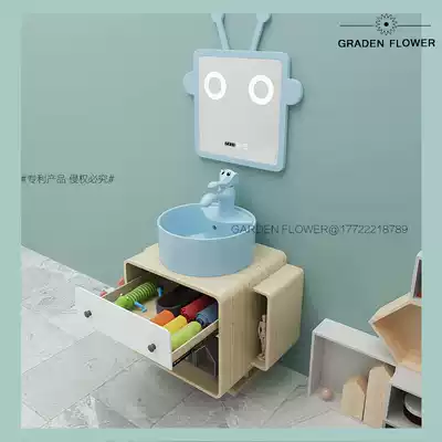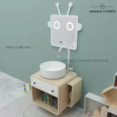 Original robot cartoon bathroom cabinet parent-child oak cabinet child wash table high and low smart mirror children washbasin
