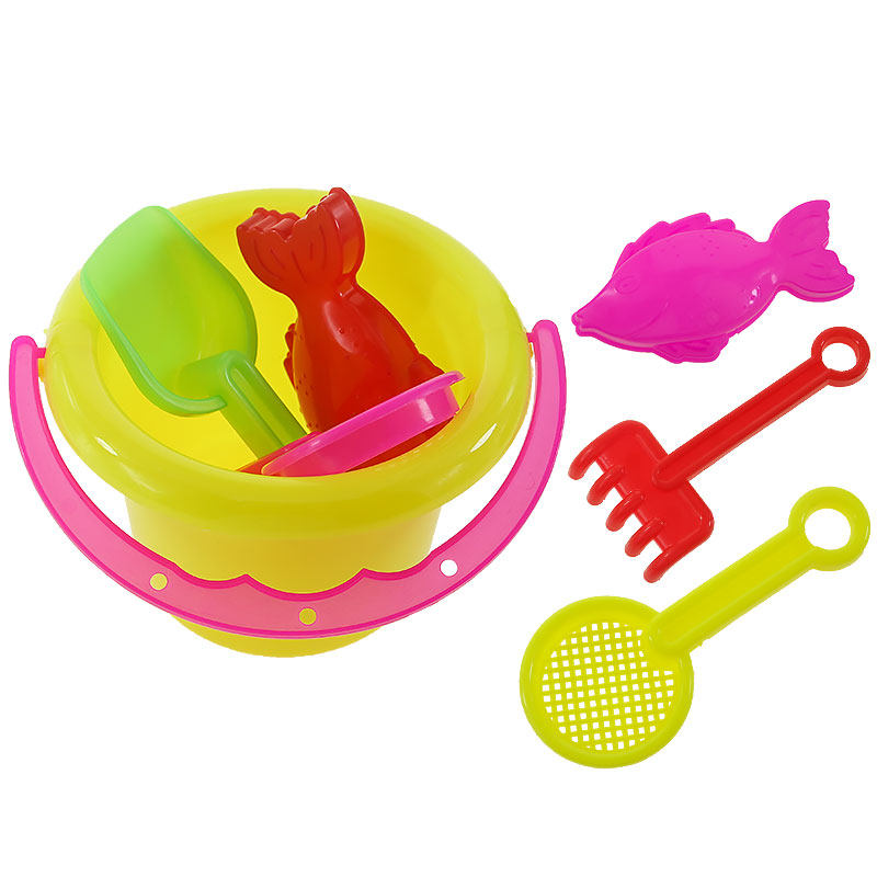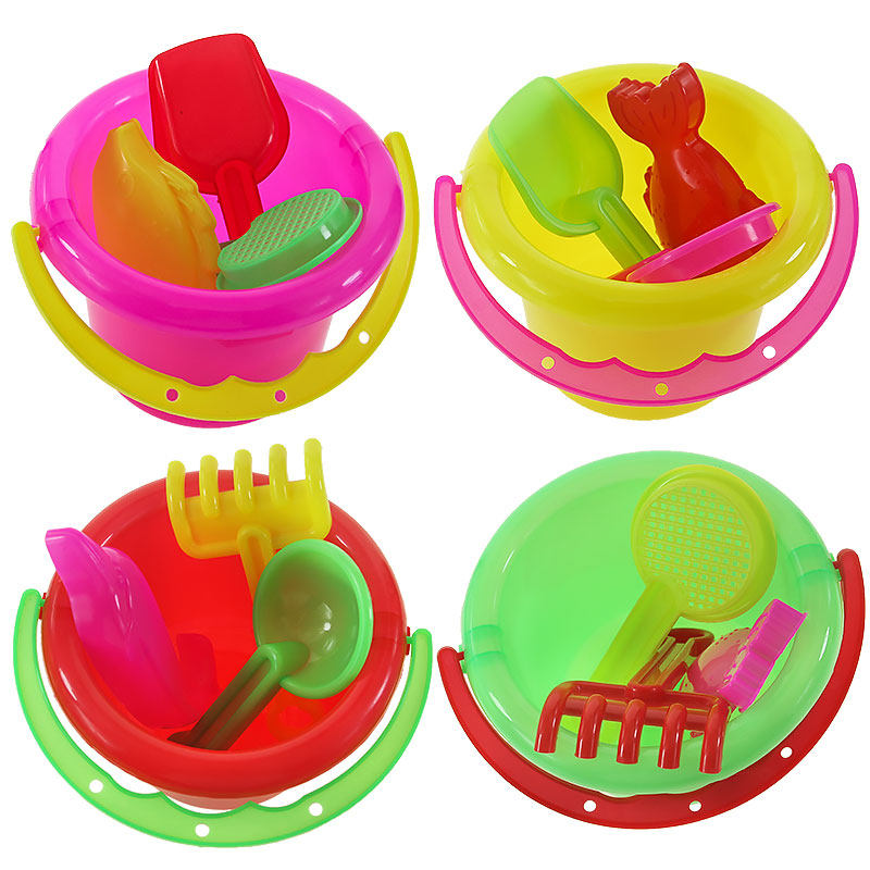 Creative Children Round Beach Bucket Play Water Dredging Tool Four Pieces Suit Boys Girl Puzzle Small Toy Gift