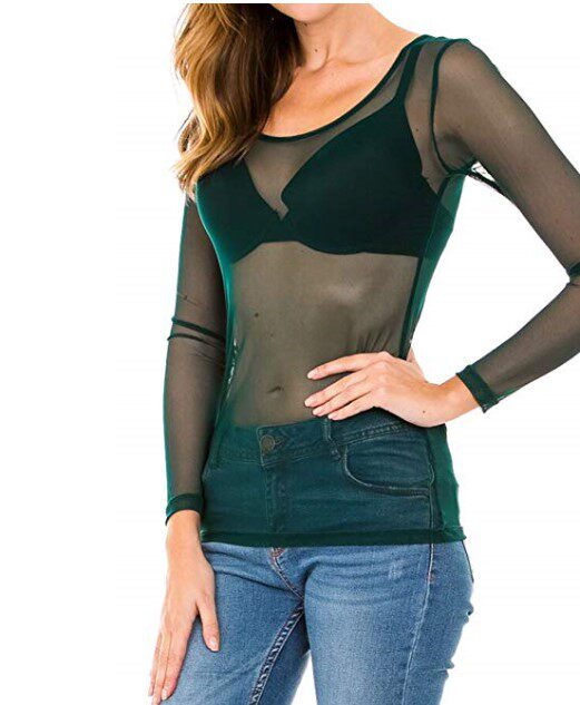 Women's autumn ultra-thin see-through all-match apricot mesh bottoming shirt T-shirt top flesh skin tone tight dance clothes invisible