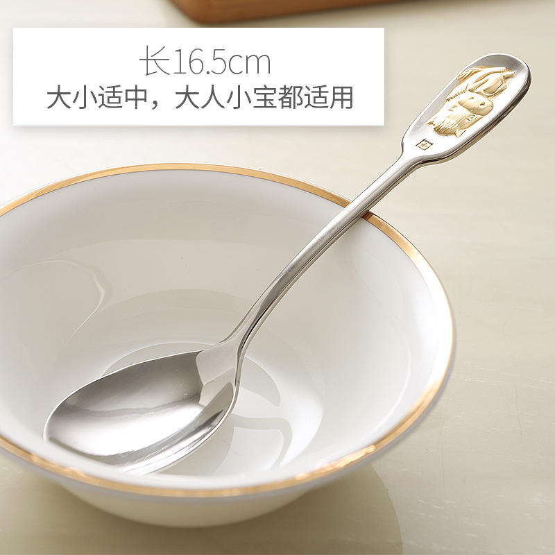 Zodiac stainless steel spoon Cute spoon spoon 304 soup spoon eating spoon Children's rice spoon Exquisite household small steel spoon