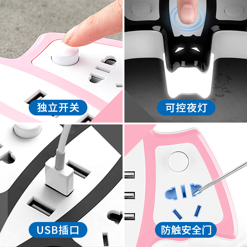 (Bat) independent switch 1 turn 4 + touch night light + 3USB (powder)