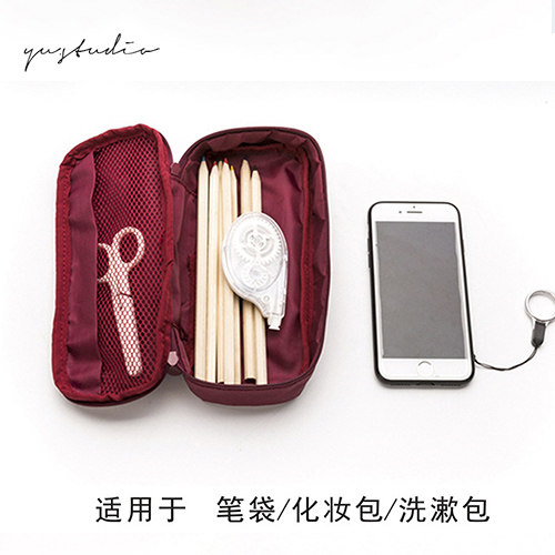 Day Style Brief Pure Color Large Capacity Male And Female High School Student Stationery Bag Multifunction Pen Bag Makeup Small Bag Ins
