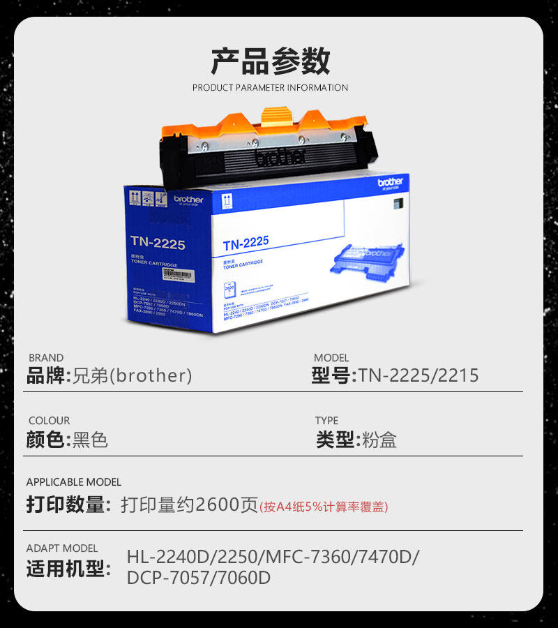 Brother TN-2225 powder box DR-2250 toner cartridge suitable for 7057 FAX-2890 2990 2240 HL-2240D 2250D
