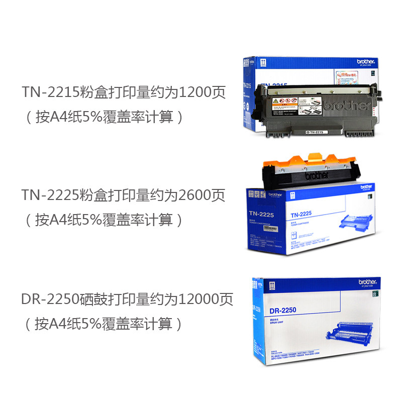 Brother Original 2215 Toner Cartridge (about 1200 pages) Brother Original 2225 Toner Cartridge (about 2600 pages) Brother Original 2250 Toner Cartridge (about 1200 pages)