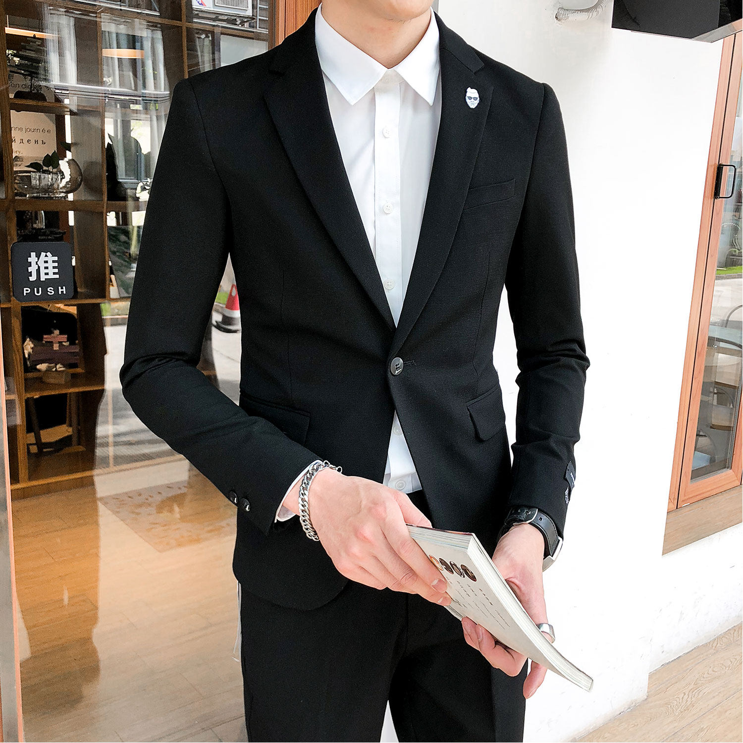 South Korea Dongdaemun men fashion solid color small suit jacket youth British slim fit suit wedding dress