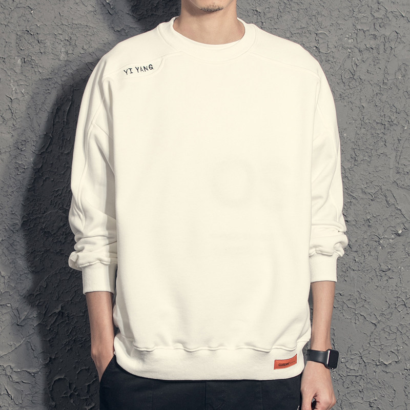 Yiyang three-dimensional cut loose fleece sweater men's letter embroidery round neck men's thick T-shirt spring and autumn styles autumn fashion