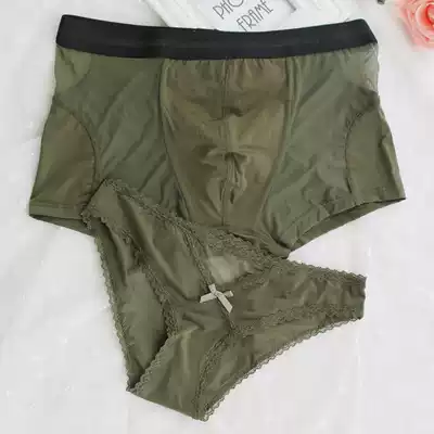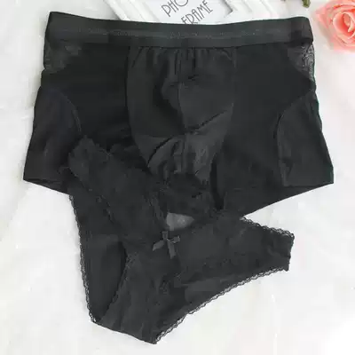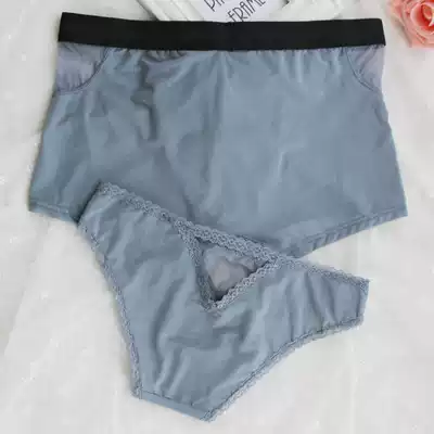 Couple underwear new creative ice silk sexy mesh men's and women's underwear set lace personality adult fun flat angle
