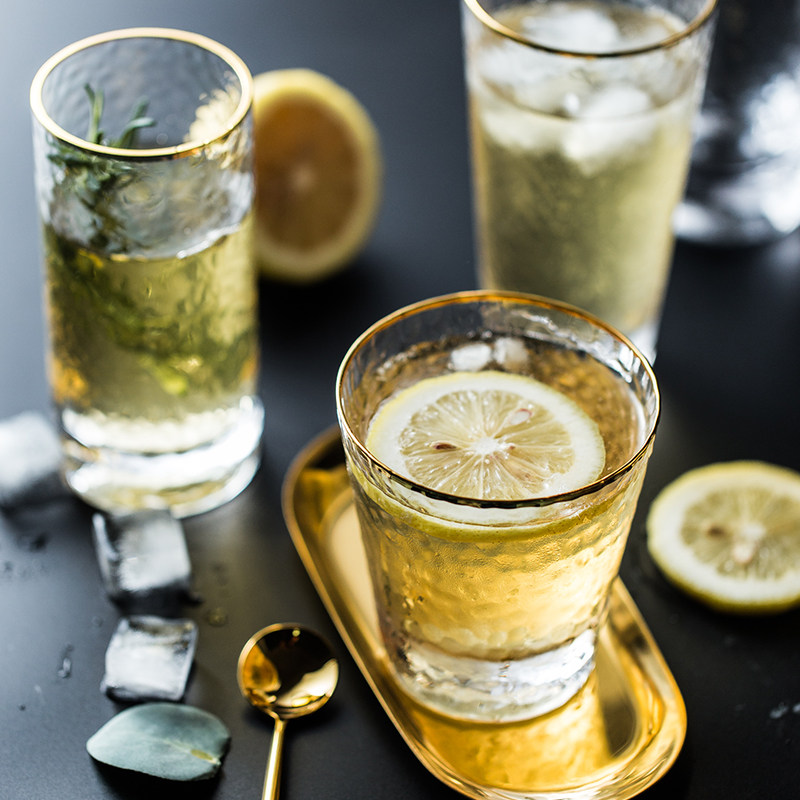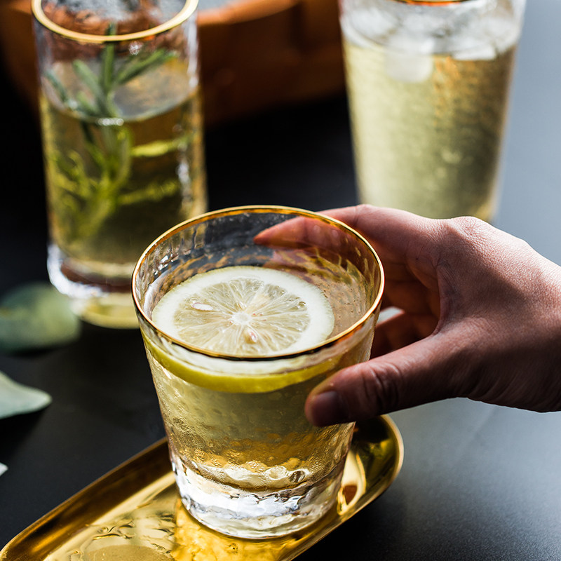 The Choe wood grain sketching glass goblet of gold.