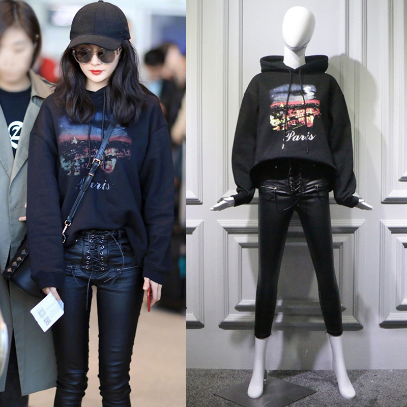 Trendy brand 2021 autumn new casual women's top plus velvet printed hooded sweatshirt winter long-sleeved loose coat