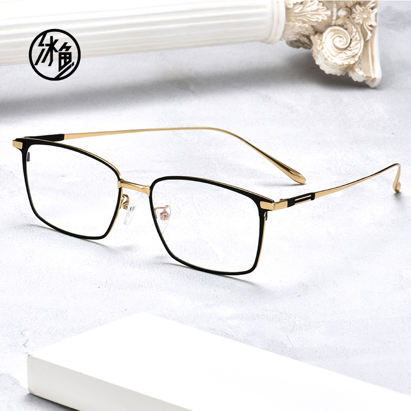 Ultra Light Pure Titanium Matched Nearsightedness Glasses Men's Glasses Frame Retro Eyellens Glasses Round Face Large Frame Can Have Degrees