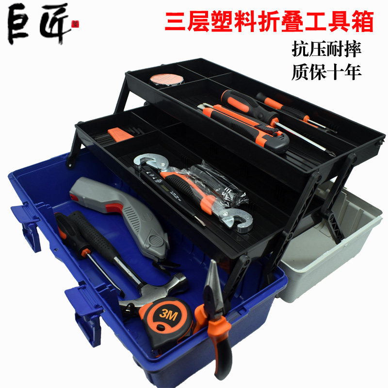 Double-layer iron storage toolbox Three-layer plastic folding toolbox Double-layer plastic folding toolbox