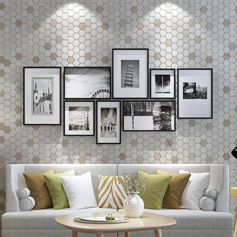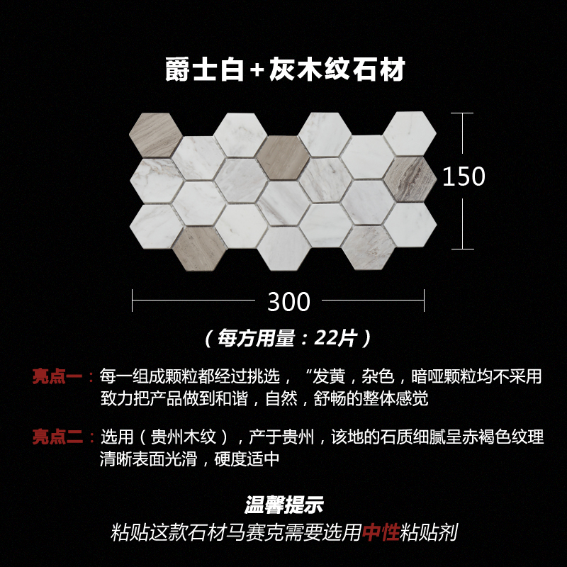 Natural Massachusetts Six-Point Natural Stone Mosaic Tile Background Wall Toilet Nordic Gray Marble Wall Toilet