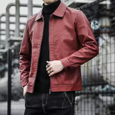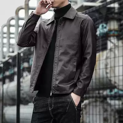 Retro youth soft leather men's Korean slim-fitting lapel handsome motorcycle suit tide brand pilot leather jacket jacket tide