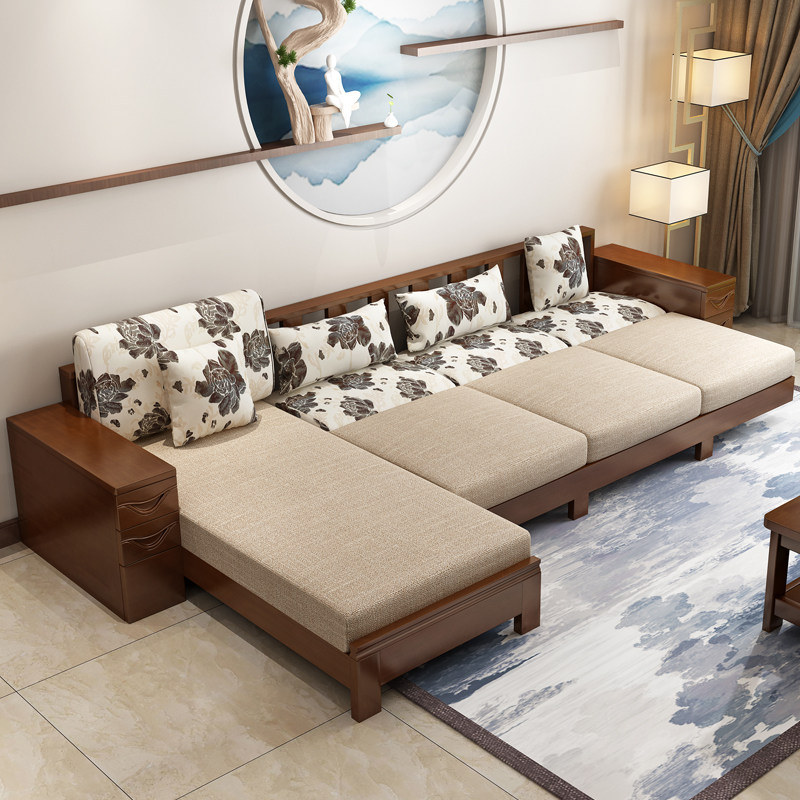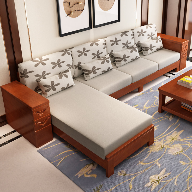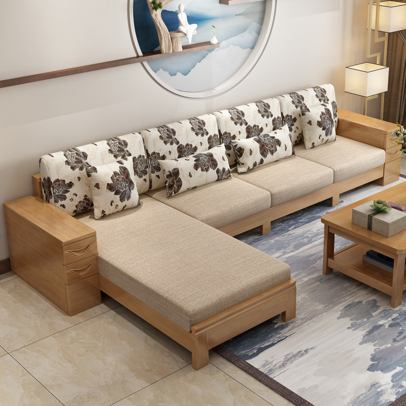 Solid wood sofa combination modern minimalist new Chinese style furniture living room concubine corner small apartment fabric oak sofa