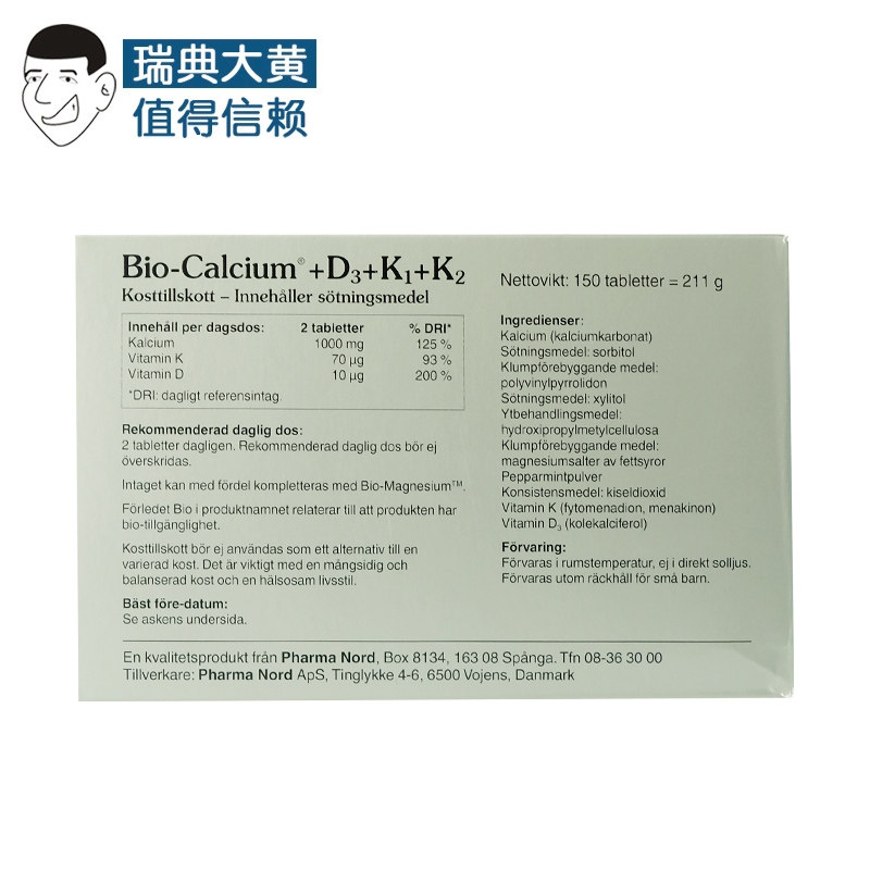 Rhubarb Home Direct Mail] Original Danish Farnord Calcium Tablets D3 K1 K2 Teen Adult Calcium Supplement Tablets Boxed