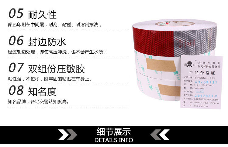 Transparent reflective stickers, car and truck reflective stickers, body red and white reflective stickers, body warning logo stickers