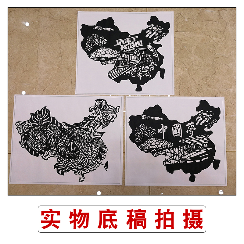 Chinese Dream Paper-cut Print Draft Chinese Map Famous Traditional Pure Hand-engraved Paper Pattern Material Black and White Copy